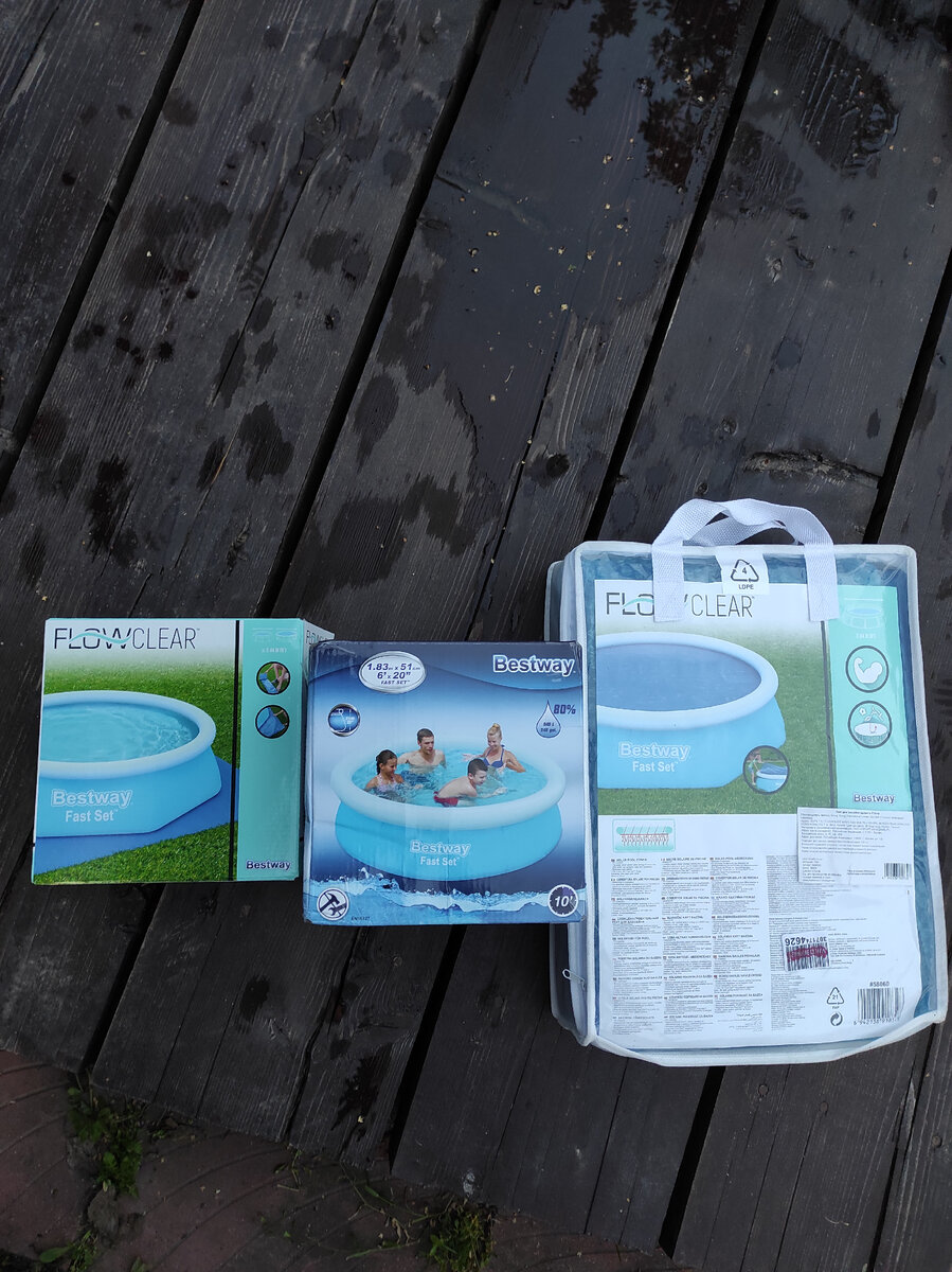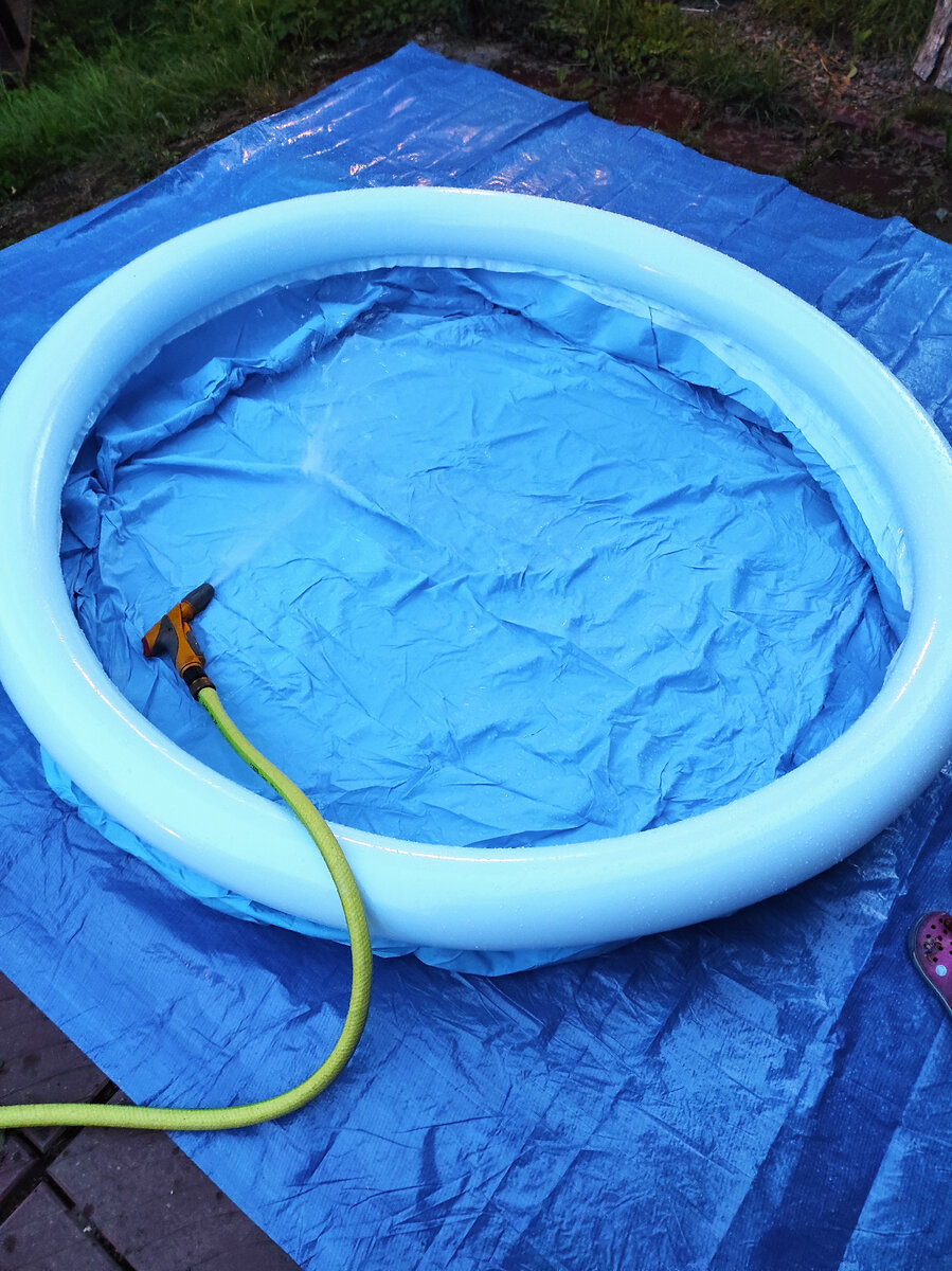 💧 распаковали бассейн, расправили, надули верхнее кольцо. Лучше насосом, ртом долго.