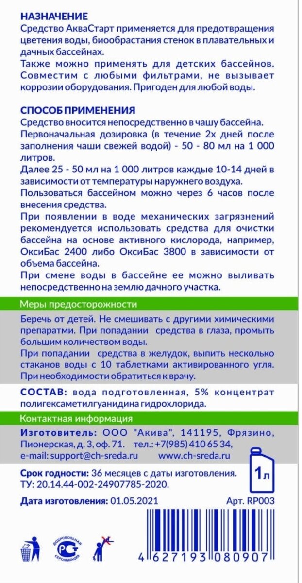 🔘 Средство для бассейна Чистая среда (ужасное средство, скажу,