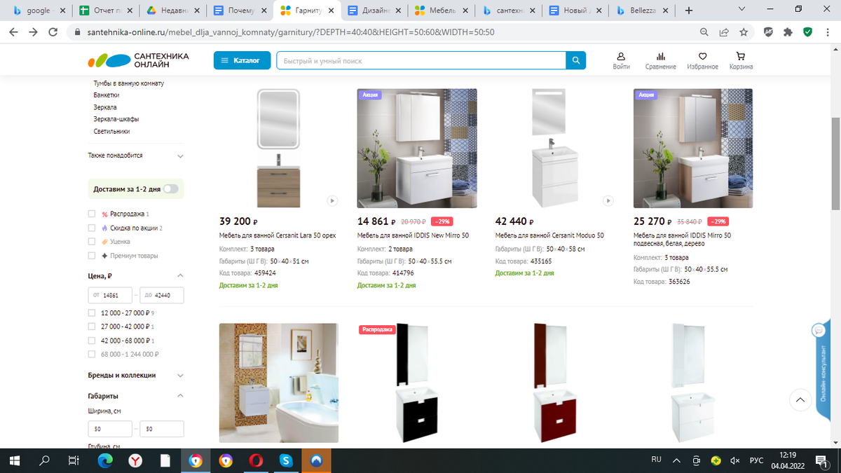 За мебелью пошли на сайт santehnika-online.ru. Во-первых, это надежнее, чем крупные международные офлайн-гипермаркеты, которые как раз закрывались, во-вторых удобнее, никто не торопит и можно спокойно осмотреться и подумать. В наличии у них более 500 брендов, и можно спокойно подобрать нужный.